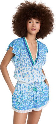 Poupette St Barth Womens Elise Pompom Trimmed Romper Blue Butterfly Batik Small Have A Look At The Picture By Checking Out The Rompers Women Fashion Rompers